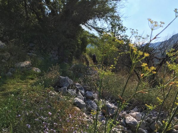Die Trockensteinmauern haben stellenweise ihren Halt verloren, die alten Weiden scheinen aufgegeben. Es wuchert wild. Ein Fest für Bienen und Nasen.