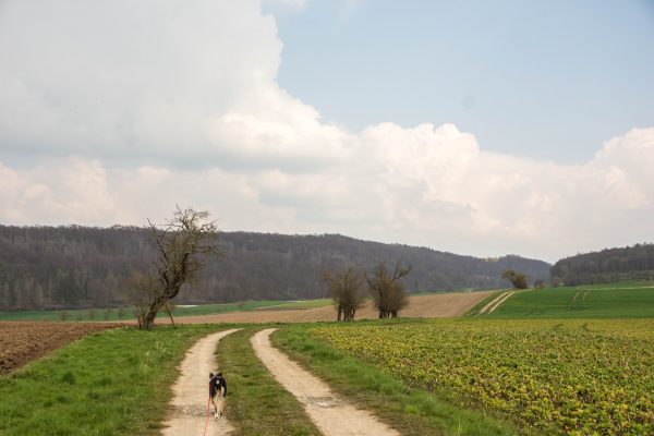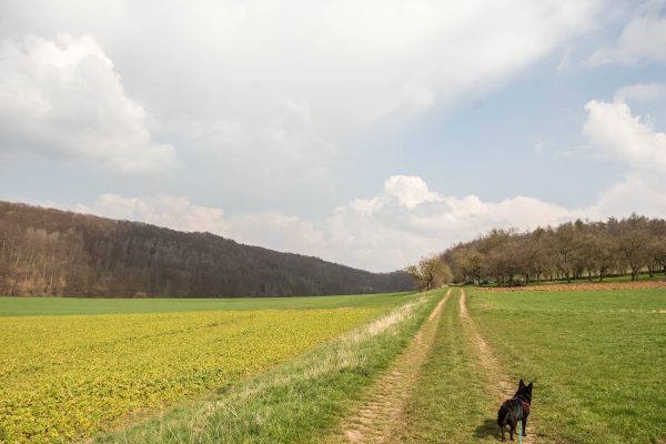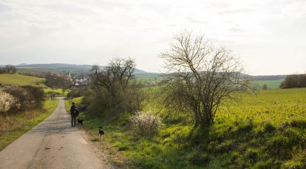 Dann geht es wieder bergab nach Niedermeiser, mit Ausblicken auf die Berge u.a. den Hohen Dörnberg.