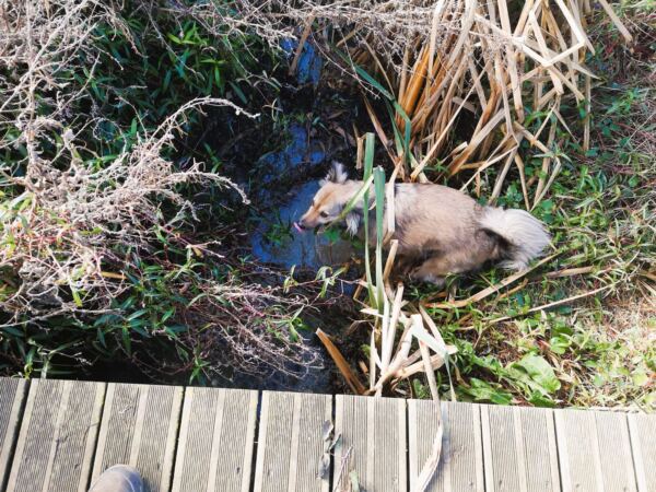 Unterwegs überqueren wir immer wieder Bachläufe. Ideal für Amos.