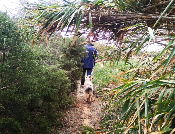 Unterwegs auf dem Fischerpfad bieten sich durchgängig traumhafte Ausblicke. Herrlich auch für Amos: der Sand unter den Pfoten.