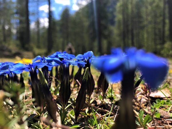 Frühlingsenzian steht in großen Kissen überall auf und am Weg.