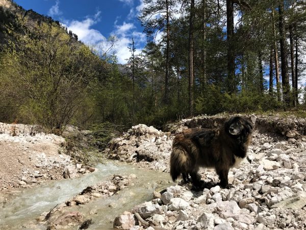 Im Frühling rauschen die Gebirgsbäche überall durchs Tal und bieten Hunden eine willkomene Erfrischung.