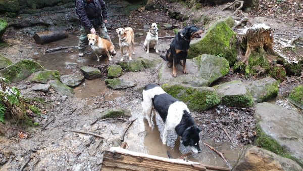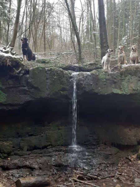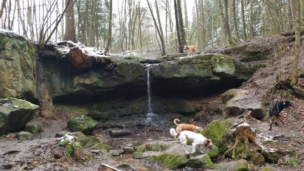 Besonders schöne Tour. Viel Spaß für die Hunde am Wasserfall und auf den Felsen.