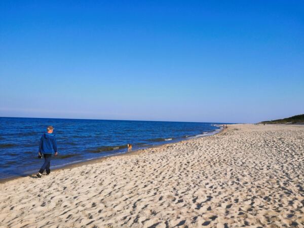Gut 1 ½ Stunden Autofahrt von Danzig entfernt liegt die Halbinsel Hel. Die Landzunge, die entfernt an einen ausgestreckten Zeigefinger erinnert, ist 34 km lang und an ihrer schmalsten Stelle nur 200 Meter breit. Im Osten von Hel liegt die offene Ostsee, im Westen die von der Halbinsel eingefasste Bucht „Putziger Wiek“. Hel gilt als Topadresse für Kitesurfer in Europa, hat aber auch Menschen mit Hund viel zu bieten. Schilfbestandene Ufer an der Bucht, herrlich lange und breite Sandstrände an der Meerseite, dazwischen lichte, sanft gewellte Kiefernwälder. Ein besonders schöner Spaziergang bringt uns vom Fischerhafen im lebendigen Seebad Jastarnia durch den Wald in den kleinen, seit jeher luxuriösen Badeort Jurata. Auf dem Weg machen wir noch einen Abstecher am Hundestrand.