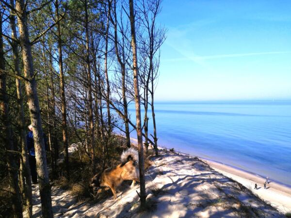 Auf unserer Reise mit Hund und Wohnmobil entlang der polnischen Ostsee wollten wir eigentlich auf dem Campingplatz „Kryjówka Orzechowo Morskie 27“ (Orzechowo 1, 76-270 Ustka) übernachten. Leider endet die Saison auf dem wunderschön im Wald gelegenen und sehr hundefreundlichen Platz bereits am 1. September. Dennoch hat es sich für uns gelohnt, in den winzigen Ort Orzechowo zu fahren. Denn dort starteten wir zu einer traumhaften Wanderung an der Steilküste ins traditionsreiche Seebad Ustka. Für uns bislang die schönste Tour mit Hund an der polnischen Ostsee.
