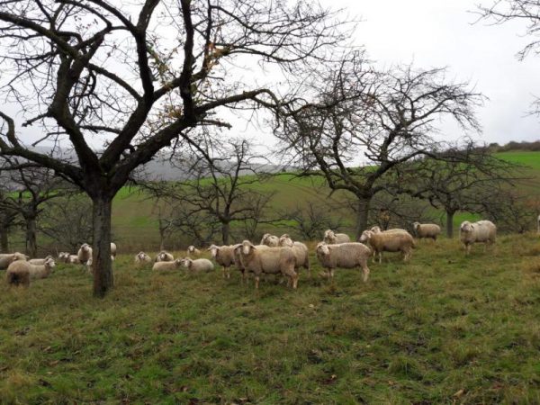 Schafherde auf einer Kirschplantage (c) Geo-Naturpark Frau-Holle-Land