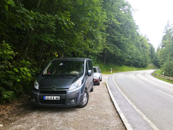 Ausgangspunkt unserer Tour: der kleine Wanderparkplatz an der Staatsstraße nach Spitzingsee.