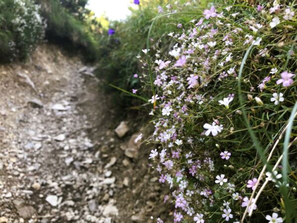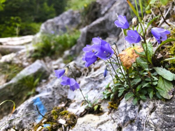 Wir erreichen den Einstieg zum Bergsteig. Der gut gepflegte Pfad führt uns durch lichten Laubwald in Serpentinen stetig bergauf. Immer wieder gewährt er uns schöne Tiefblicke auf den Schliersee. Doch auch am Wegrand liegt viel Sehenswertes. Von Frühling bis hinein in den Herbst gedeihen hier viele Wildblumen und Gräser. Schließlich stehen wir vor einem Weidezaun: Wir haben den Kessel erreicht, in dem die Jägerbauernalm liegt.