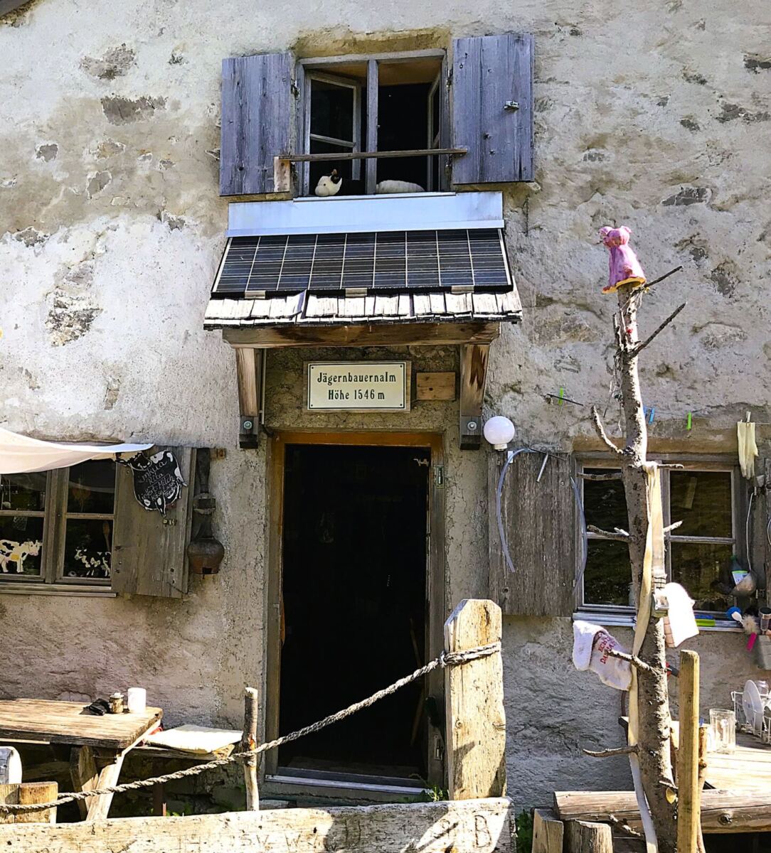 Wenn sich Pippi Langstrumpf eine Almhütte gebaut hätte, so würde sie aussehen: ein kleines Haus aus grobem Feldstein, davor ein wachsames Lama, ein schlafendes Schwein, drumherum freilaufende Ziegen, Kaninchen, Hühner, natürlich Kühe. Und auf den rohen Holztischen vor der Hütte Wildblumensträuße in bunt bemalten Krügen und Käsebrote. Die Jägerbauernalm ist ein wahr gewordener Kindertraum – und das in traumschöner Lage. Sie duckt sich an den Rand eines kleinen Bergkessel unterhalb des Jägerkamps (1.746 m), nicht weit entfernt vom Spitzingsee. Sie zählt zu den ältesten Almen der Region und ist eine der letzten in weitem Umkreis, die nur zu Fuß erreichbar ist. Nicht einmal eine Materialseilbahn versorgt sie. Während der Weidesaison ist die Alm bewirtschaftet. Alles dafür Nötige wurde zu Fuß hinaufgetragen. Auch das macht die Jägerbauernalm zu einem ganz besonderen Ort – und zu einem unserer Lieblingsplätze im Münchner Umland. ✨💕
