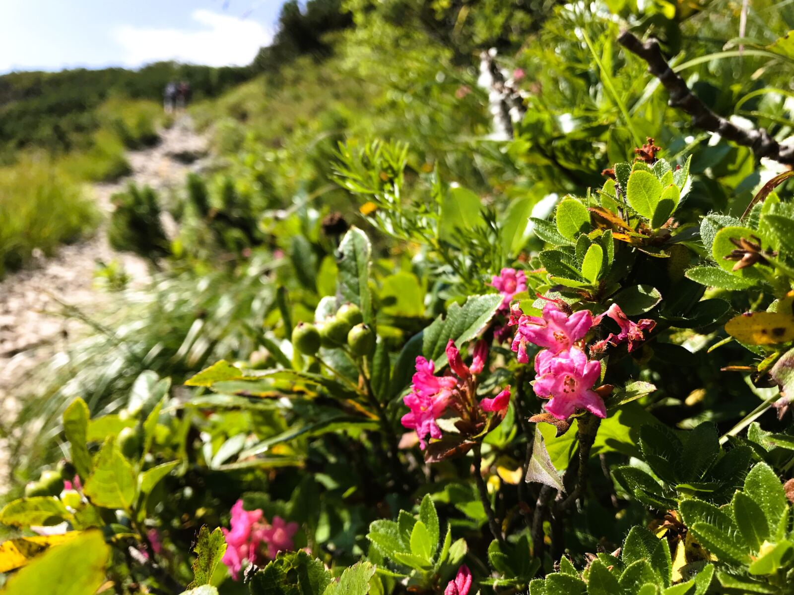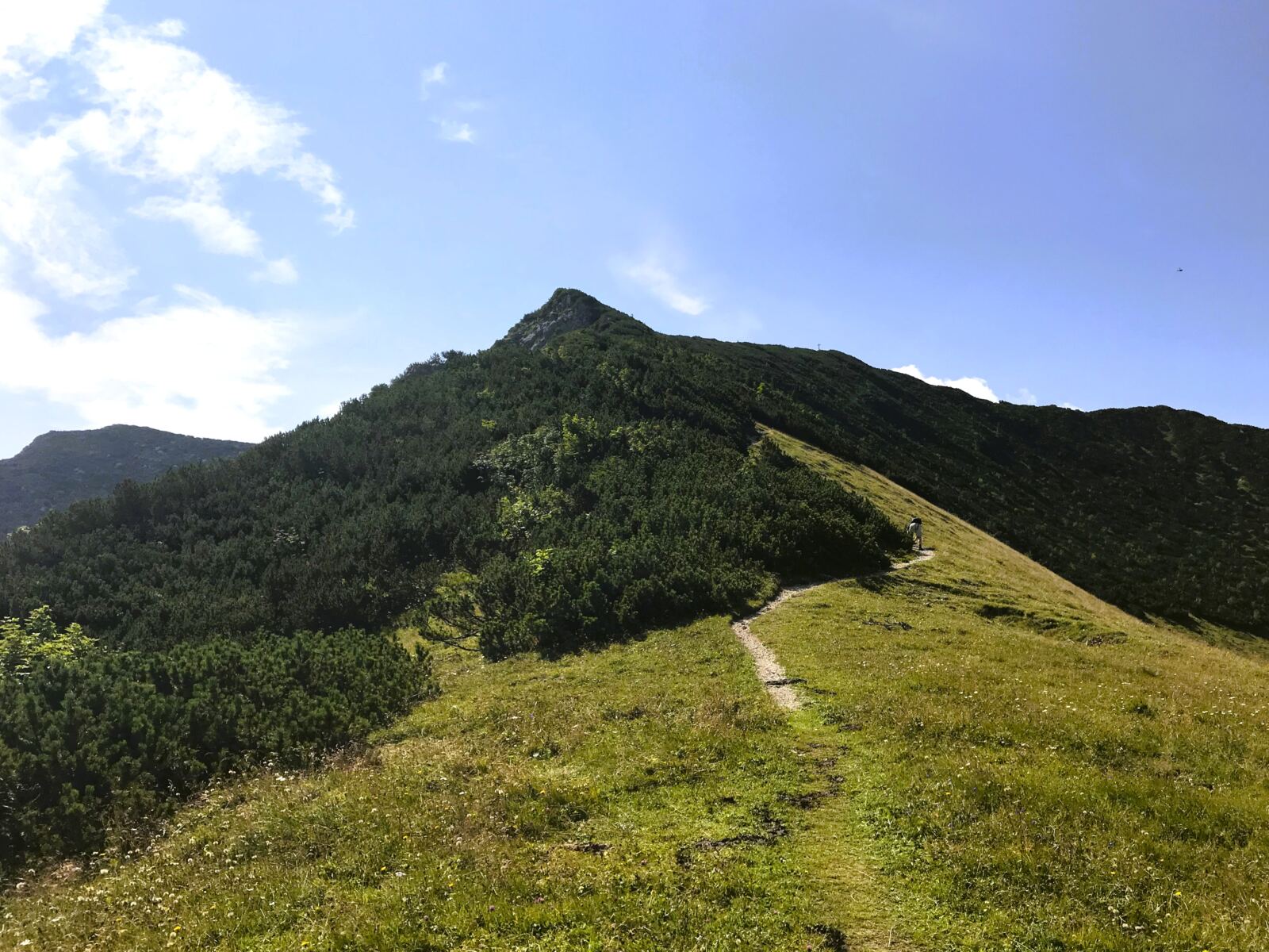 Der Pfad durch die Latschen führt hinüber zum Gipfel der Wilden Fräulein.