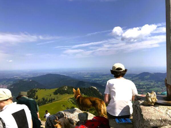 Höhepunkt unserer Runde: Rast unter dem Gipfelkreuz des Jägerkamps. Der Rundumblick ist traumhaft.