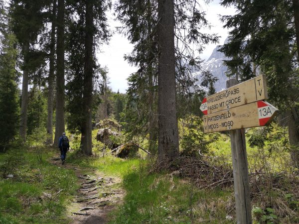 Am Rand von Sexten, im Ortsteil Moos, liegt der Campingplatz „Caravanpark Sexten“. Von hier aus lässt sich wunderbar mit Hund zu tollen Wanderungen im Naturpark 3 Zinnen starten. Diese Tour führt uns zunächst zum Kreuzbergpass, dann weiter hinauf Richtung Arzalpenkopf und Burgstall, ein felsiger Vorsprung am Fuß der Sextener Rotwand in direkter Nachbarschaft der Rotwandwiesen.