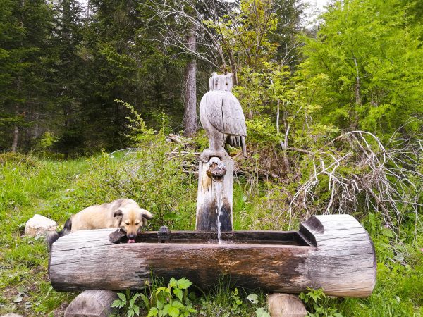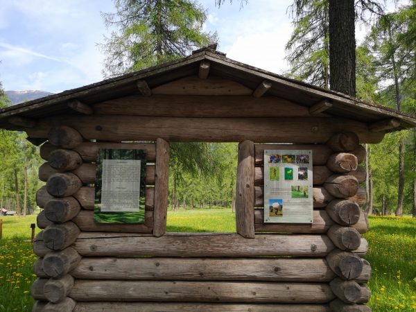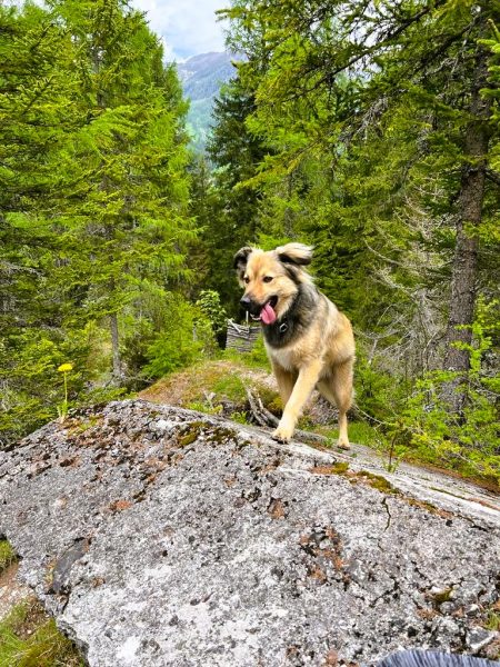 Wir parken im Zentrum von Sexten an der Dolomitenstraße in der Nähe des Rathauses, kurz vor der Brücke über den Sextener Bach. Wir queren die Brücke, biegen links ab, dem Teersträßchen Richtung Fischleintal folgend. Wir laufen vorbei an der Käserei und etlichen Infotafeln zur Käseherstellung. An der Weggabelung mit altem Stall und Wegmarterl biegen wir rechts ab und laufen den Berg hinauf bis zum Waldrand. Am Waldrand biegen wir links ab und folgen dem schmalen Pfad (Nr. 1) weitgehend eben Richtung Festung Haideck und Fischleinboden-Hütte durch den Wald. Infotafeln laden mit Texten, Bildern, Düften und Tönen zum Aufschlauen ein. Wenig später knickt unser Weg ab und trifft auf einen Forstweg. Wir folgen ihm bergauf Richtung Festung Haideck (1a) und biegen wenig später wieder links ab. Weiter geht es sanft bergan Richtung Festung Haideck. Wir erreichen eine kleine Lichtung. Linker Hand, von Bäumen fast verborgen, liegen die Reste der einst mächtigen Wehranlage. Auf schmalen Pfaden, die unser Amos begeistert hinauf und hinunter tobt, drehen wir eine Runde auf den Ruinen.