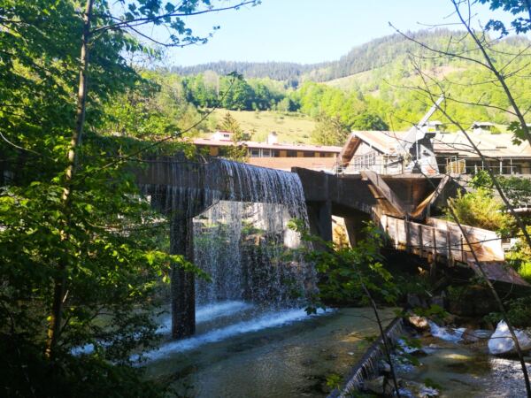 Am Wasserkraftwerk Waltlmühle. Deren Geschichte begann schon 1466 als Getreidemühle.