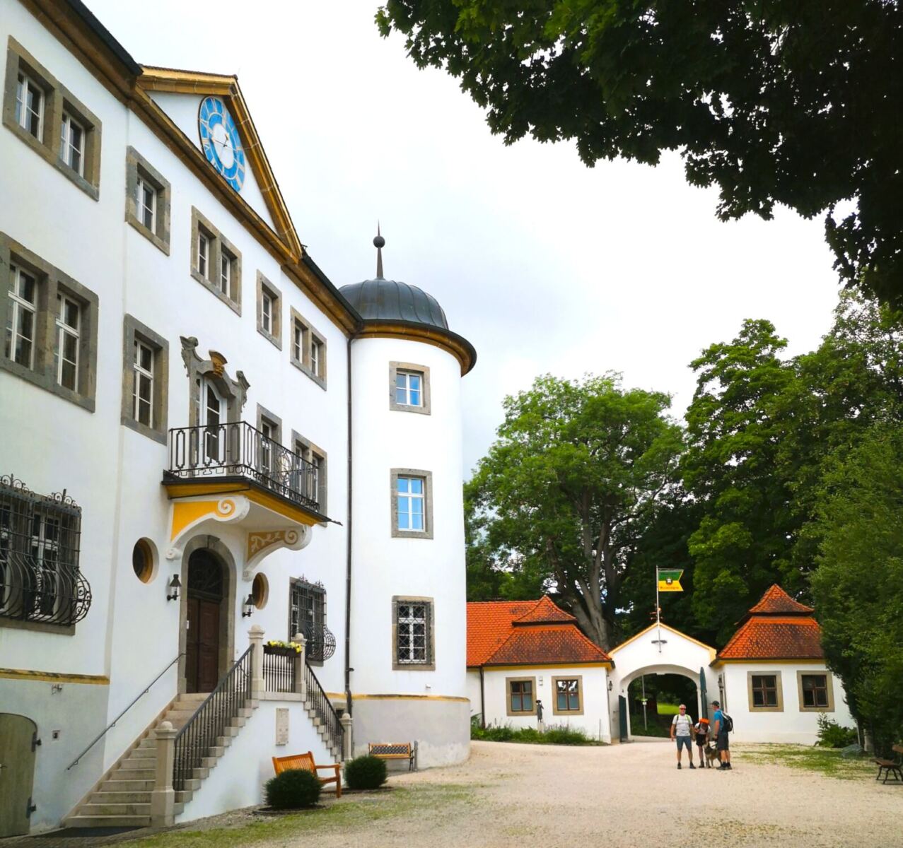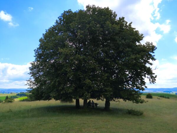 🗺️Startpunkt ist der Wanderparkplatz am Deutsch-Orden-Schloss in Reimlingen. Wer mag, wirft einen Blick in den barocken Schlosshof, der einen Hauch von Ritterromantik versprüht. Wir folgen der Schlossstraße, dann weiter über die Straße „Am Sommerkeller“, die uns bald in den Wald bringt. Bald endet der Asphalt. Dem Wegweiser folgend, biegen wir leicht links ab. Auf Wiesenpfaden und Wirtschaftswegen, schließlich ein kurzes Stück durch den Wald wandern wir sanft bergauf, bergab und wieder bergauf bis zur Hochfläche Albuch.