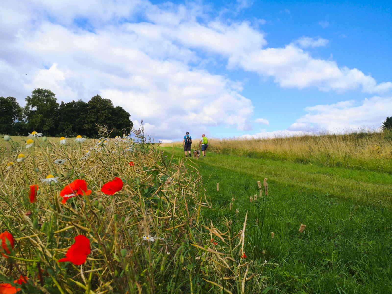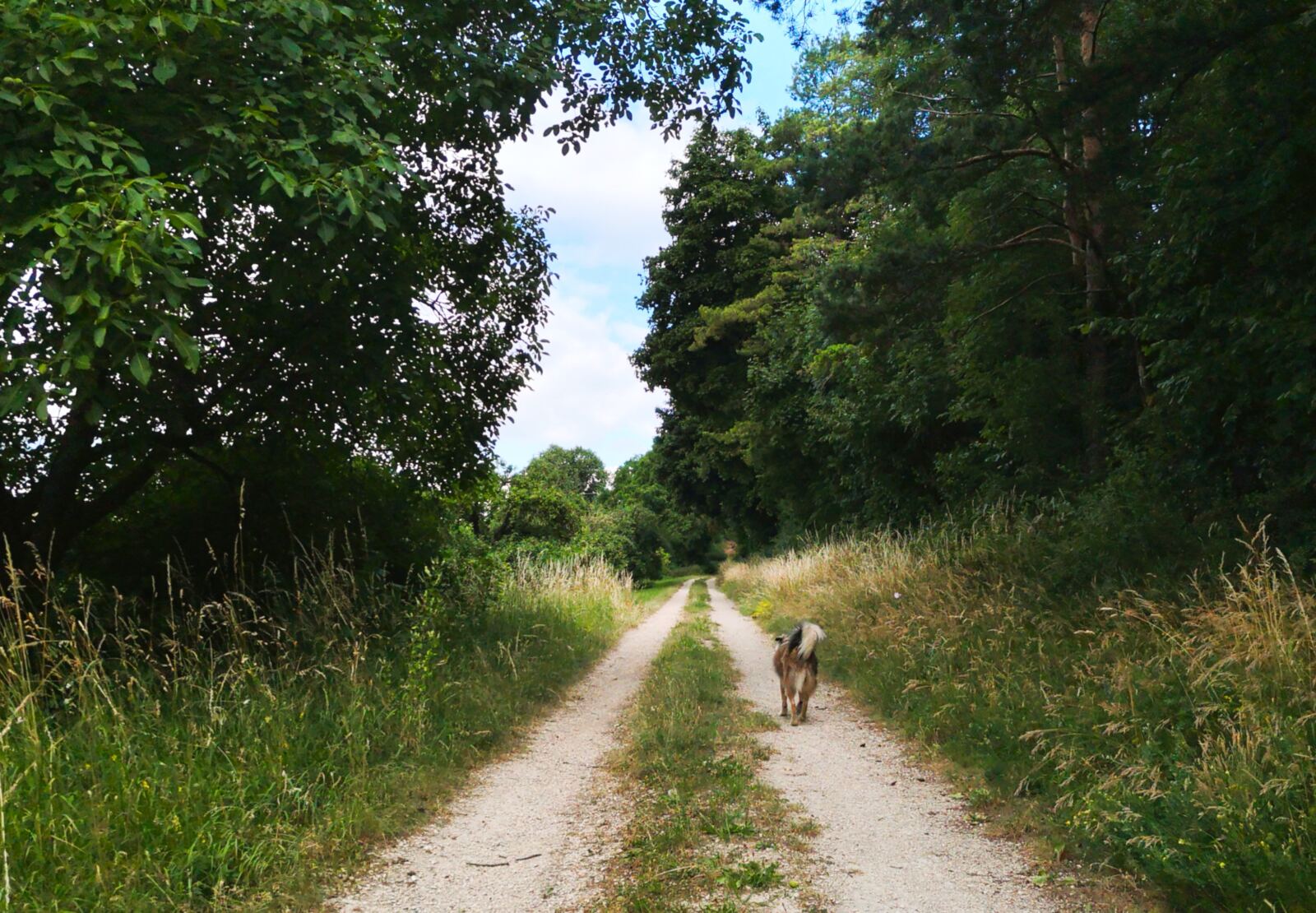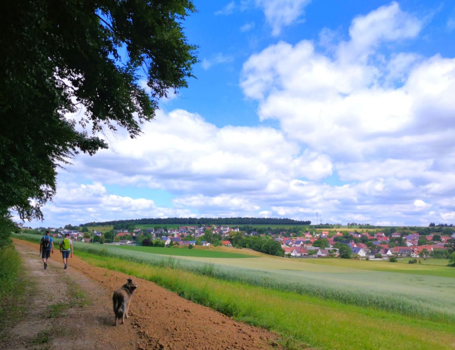 Schatten ist eher rar – gerade im Hochsommer kann die Sonne erbarmungslos brennen. Daher: lieber früh aufbrechen und reichlich Wasser für Mensch und Hund mitnehmen. Immer wieder gibt es aber auch Möglichkeiten zur Erfrischung an Bächen oder Weihern – zur Freude unserer vierbeinigen Begleitung 🌿💧. Die Strecke ist insgesamt sehr hundefreundlich, mit wenigen Straßenquerungen und viel Platz zum Laufen.