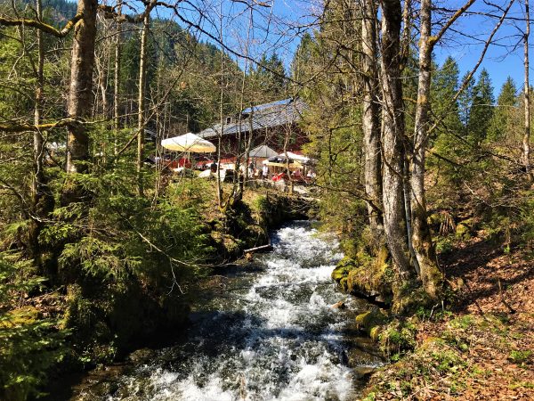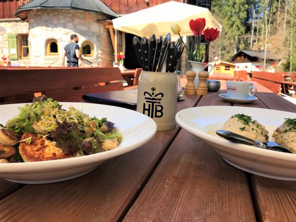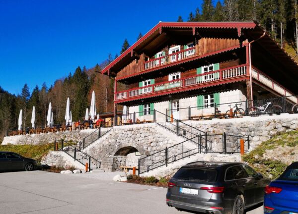 Am Wegrand bieten sich uns etliche schöne Einkehrmöglichkeit, auf dem ersten Drittel im Blecksteinhaus. Der Hinweg endet am Forsthaus Valepp, das langen Jahren im Dornröschenschlaf nun wieder (gehobene) Hüttenküche bietet. Wer selbst ein Picknick mitnehmen möchte: Oberhalb des Alten Forsthaus gibt es eine kleine Kapelle, die Wiese davor eignet sich wunderbar als Platz für ein Picknick.