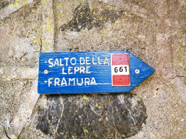 🗺️Wegbeschreibung: Ausgangspunkt unserer Tour ist der Bahnhof von Bonassola. Über die breite Via di Risorgimento laufen wir hinunter zur Kirche Chiesa di Santa Caterina d’Alessandria. Wir gehen durch die Unterführung Richtung Strand. Hier halten wir uns rechts und laufen auf einem schmalen, historischen Fußweg mit schönem Blick auf den Strand bergauf Richtung Oratorio Sant‘ Erasmo. Wir laufen rechts am Kloster vorbei weiter bergauf und erreichen die Straße. Hier halten wir uns links. Wenig später geht rechts von der Straße eine Treppe ab. Hier finden wir auch den Wegweiser Richtung Salto della Lepre und Framura.