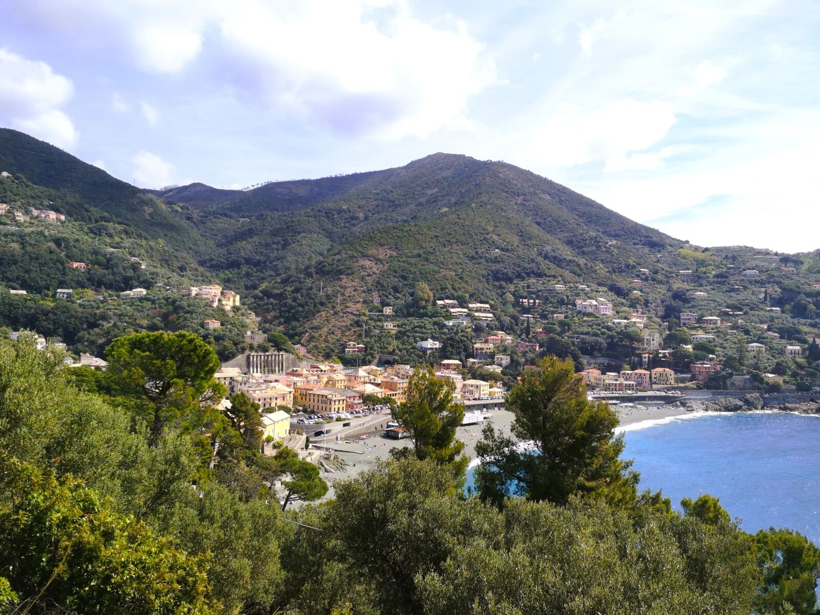 Ein schöner breiter Fußweg bringt uns in weiten Kurven hinauf. Unterwegs genießen wir den Weitblick über Bonassola und auf das Kirchlein Madonna della Punta, das auf dem Felsenriff des westlichen Kaps liegt. Von dort aus soll man von Punta Mesco bis Portofino blicken können.
