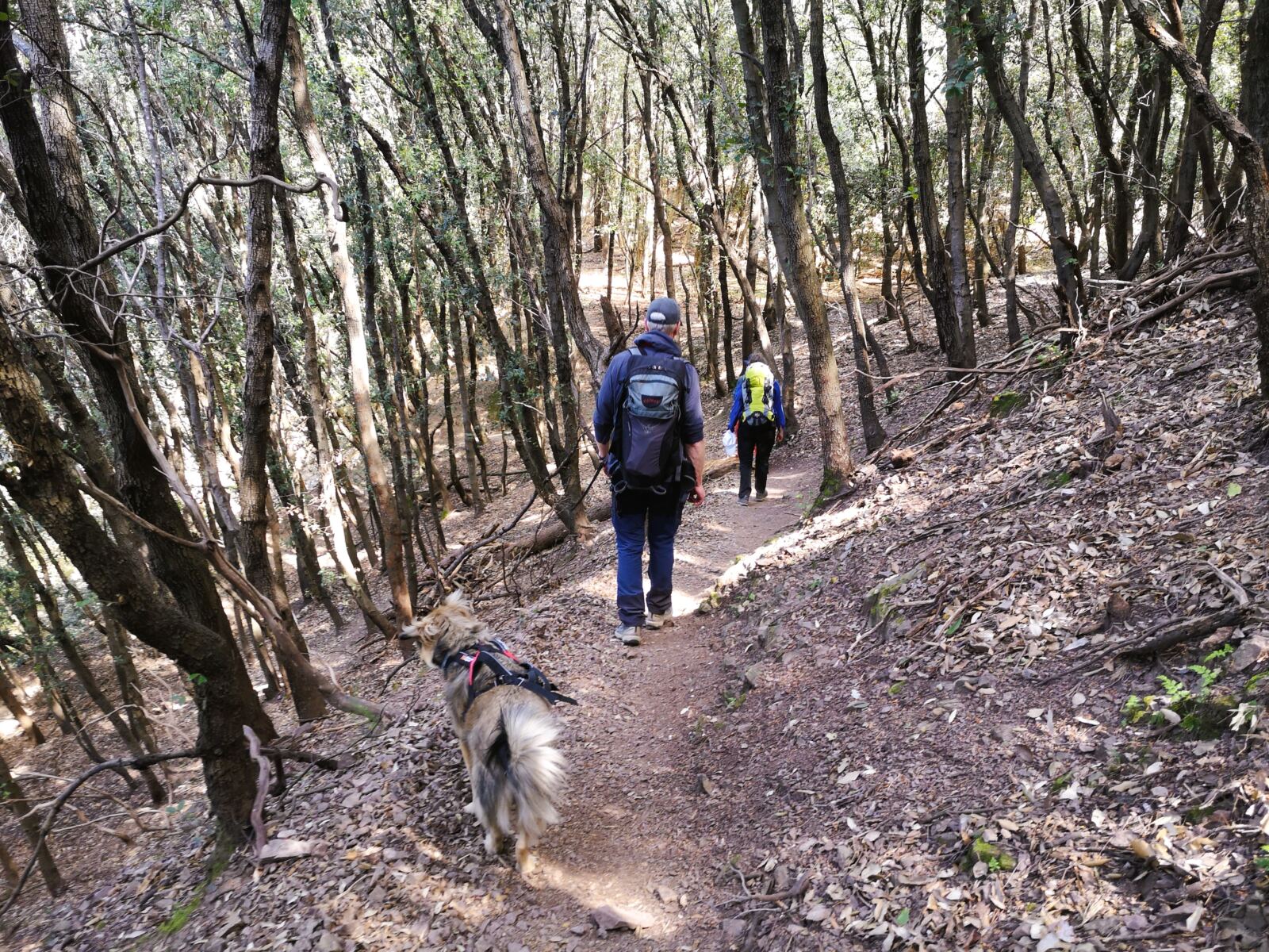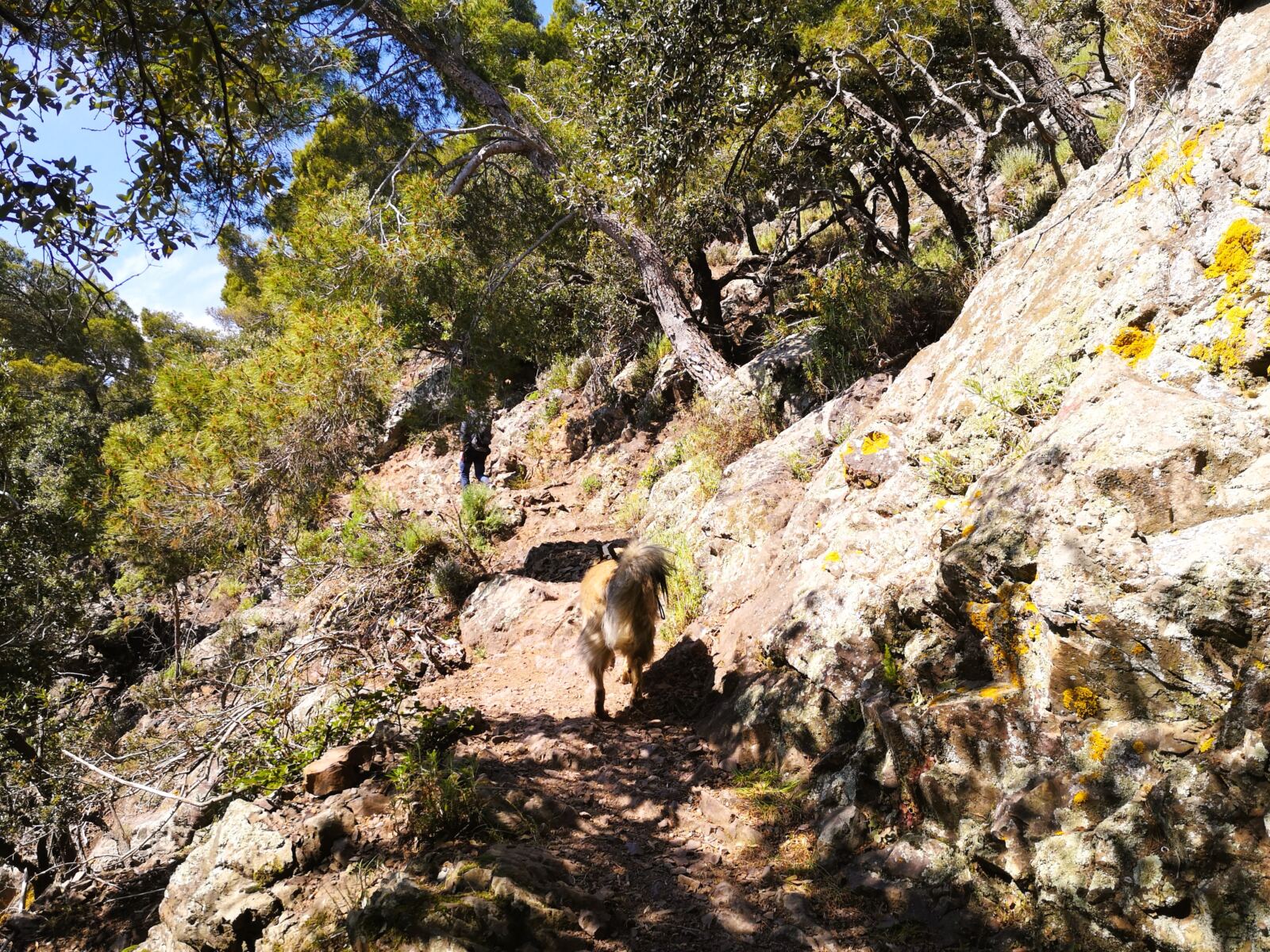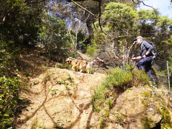 Zwar geht es auch hier stetig auf und ab, doch die Wege sind oft breiter, und es gibt kaum hohe Stufen. Unser Amos konnte über weite Strecken frei laufen und musste nicht ständig Gegenverkehr ausweichen.