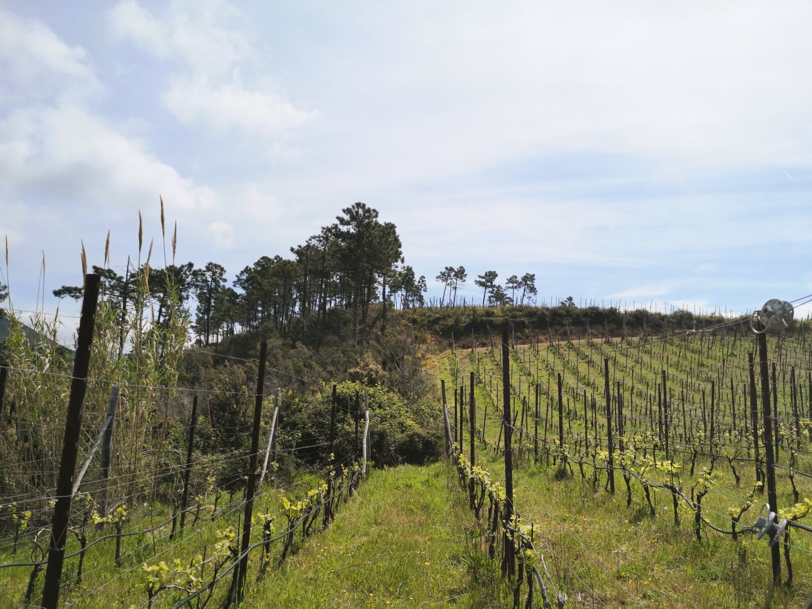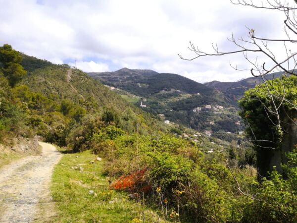 Wir gelangen schließlich an eine Wegkreuzung. Hier laufen wir weiter geradeaus Richtung Salto della Lepre. Nach der Pause auf dem Plateau gehen wir die wenigen Meter wieder zurück zur Kreuzung. Hier halten wir uns nun links, dem Wegweiser Richtung Framura folgend. Auf dem steinigen Weg geht es nun durch offeneres Gelände bergauf. Schließlich gelangen wir zu den Weinlagen von Salice.