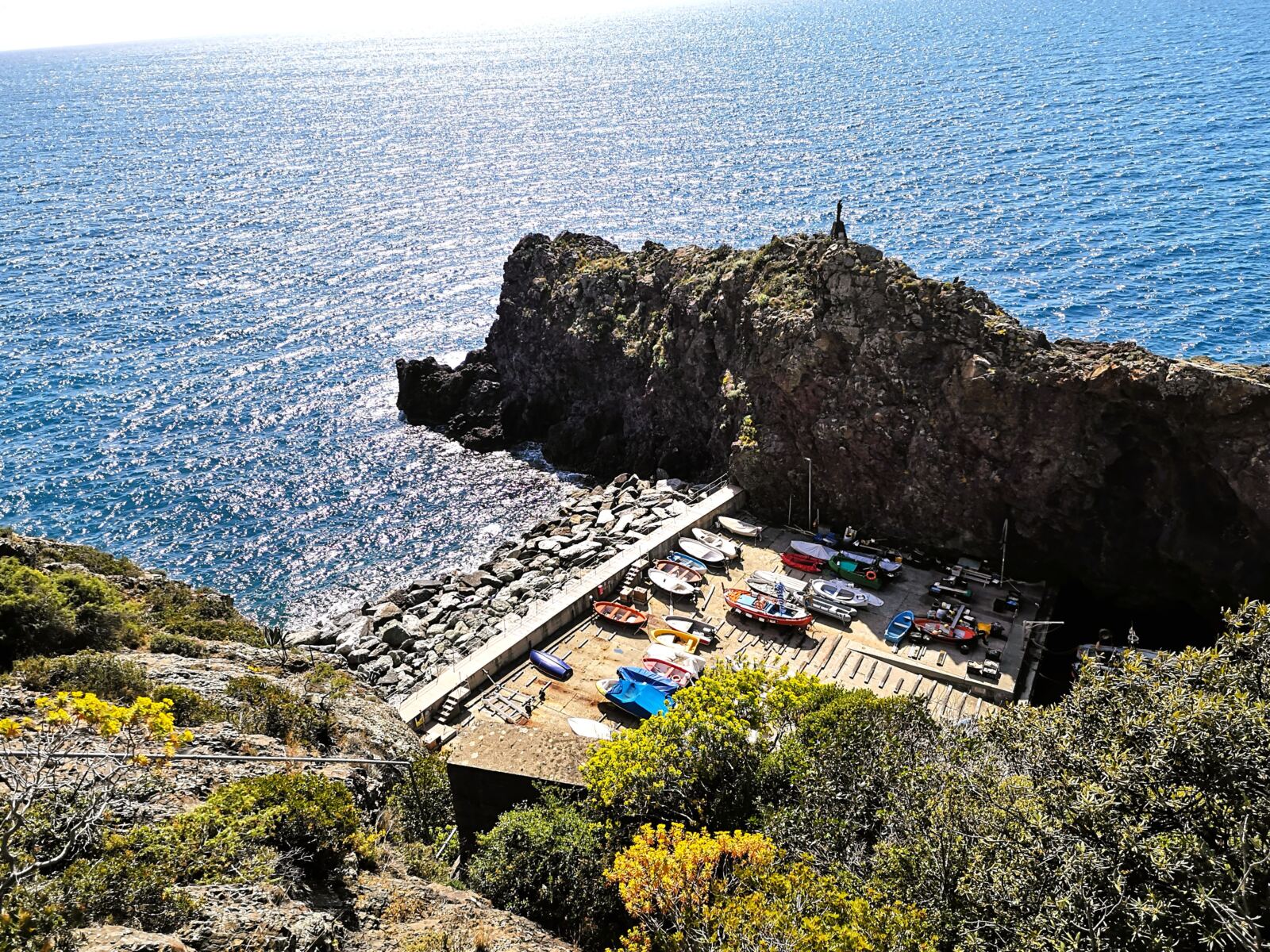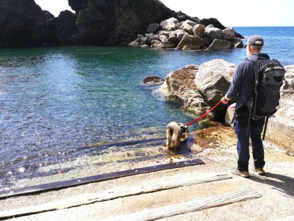 Das Hafenbecken wirkt fast ein wenig eingeklemmt – zwischen Felsen und Betonmauern gedrückt. Gerade deshalb hat der Ort eine besondere Stimmung. Boote schaukeln im Wasser, die Felsen ragen steil aus dem Meer. Ein toller Ort, ums sich zum Abschluss die Pfoten zu kühlen.