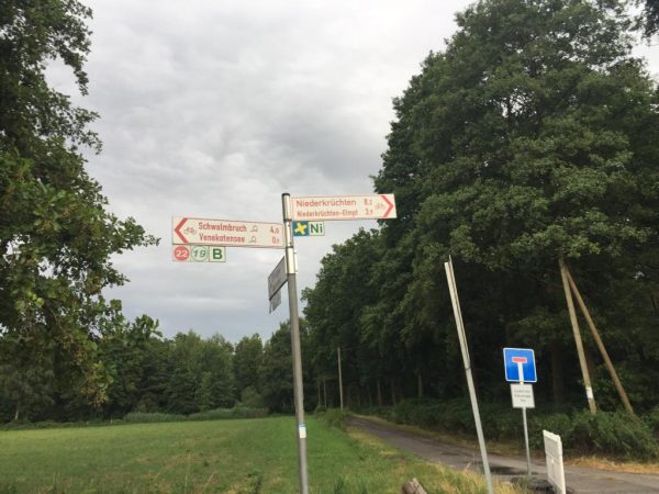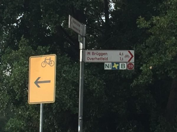 Wir haben die Strecke vom Ort Venekoten vorbei an den beiden Hochhäuser Alpha und Omega gemacht, dann links über die beiden Brücken, und weiter rechts in Richtung Brüggen.