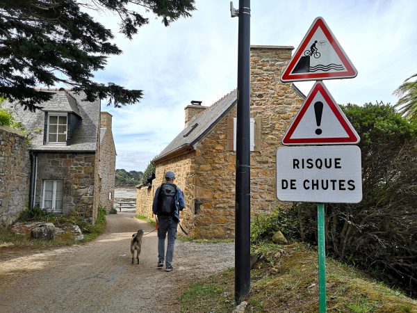 Für Menschen mit Hund lohnt sich unseres Erachtens auf jeden Fall ein Besuch der Insel – für einen Tag. Einen längeren Urlaub würden wir hier nicht verbringen. Denn hier herrscht überall Leinenpflicht (einheimische Hunde erkennt man übrigens daran, dass sie frei laufen :-)) Vor allem aber findet sich hier wenig Freiraum für Rennen und Toben. Bréhat teil sich in eine vergleichsweise dicht bebaute Südinsel und eine etwas lichter bebaute Nordinsel, die eine Brücke verbindet. Nur an der Nordspitze der Nordinsel rund um den Leuchtturm Phare du Paon haben wir klassische Wanderwege mit ein wenig Raum zum Rennen gefunden. Dennoch: für eine Tagestour mit Hund lohnt sich Bréhat allemal. Leinenfrei austoben konnte sich unser Amos hinterher – direkt am Wohnmobilstellplatz neben dem Fähranleger vor Bréhat stößt man wieder auf den Zöllnerpfad GR 34, außerdem auf viele wilde Buchten. Entdeckerfreude und Hundespaß lässt sich hier also locker miteinander verbinden.