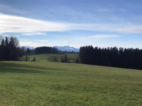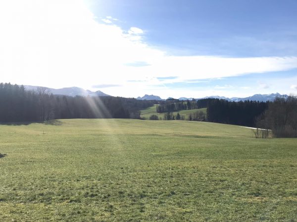 Der Abschnitt am Westufer führt uns leider einen großen Teil am Bahndamm entlang sowie auf einer Schotterstraße, die aber leider aufgrund der vielen Anwohner nicht so niedrig frequentiert ist, wie man es gerne hätte. Wer also nur einen Teil der rund 20 km langen Runde gehen möchte, sollte sich auf das Ostufer konzentrieren. Und wer wie wir die ganze Runde laufen will, sollte am Westufer starten und sich das Ostufer für den Rückweg aufsparen. Hier hat man dann durchgehend einen wunderschönen Blick auf die Berge und spaziert durch die Ortschaften am Simsee. Diese sind wunderschön „altbayrisch“ gehalten mit viel Holz, vorgezogenen Dächern und ausladenden Balkonen. Viele Abschnitte bringen uns durch den Wald und immer wieder an kleinen Bächen und Flüssen entlang. Unsere Hunde haben also immer wieder die Möglichkeit, im Wasser zu planschen und aufzutanken. Zudem gibt es mehrere hundefreundliche Badeplätze am Simsee, an denen unser Hund schwimmen kann.