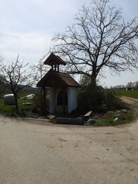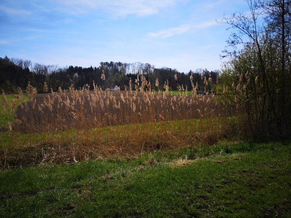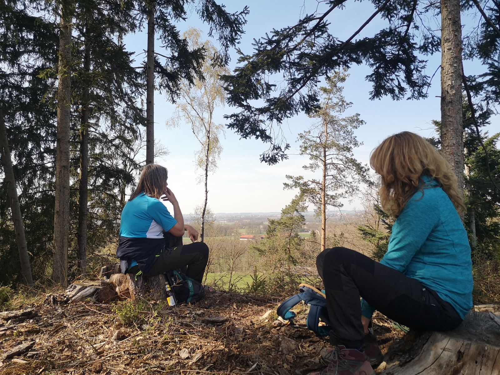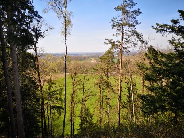 Hier haben wir einen kleinen Abstecher auf den Hügel für eine Pause mit Aussicht eingelegt. Dann geht’s am Grünbach entlang zurück zum Ausgangspunkt.