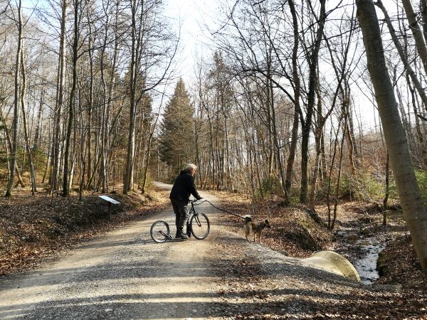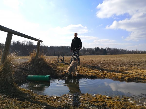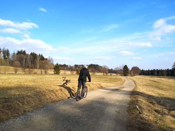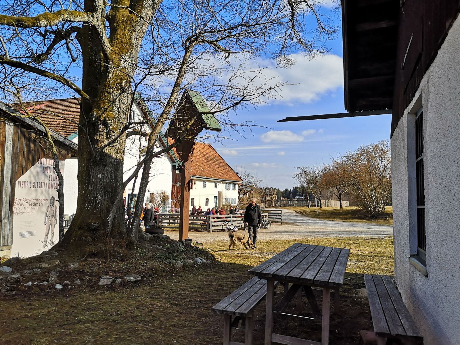 Auf einer weiten Waldlichtung bei Schöngeising nahe des Ammersees liegt der Jexhof. Der Einödhof, 1433 erstmals urkundlich erwähnt und noch bis 1980 von einer Dienstmagd bewohnt, beherbergt heute ein liebevoll gestaltetes Bauernhofmuseum. Hunde sind in den Museumsräumen nicht gestattetet, wohl aber in Restaurant und Biergarten. Hier lässt sich wunderbar die Zeit vertrödeln, mit Kaffee, Kuchen oder Deftigem. Und mit Blick auf betagte Obstbäume und glückliche Hühner, die ein Staub-Bad nehmen. Die Wege rund um den Jexhof sind befestigt und eignen sich sehr gut für Touren mit Hund und Scooter, mit Hund und Rad oder für einen Spaziergang mit Hund, Kindern und Kinderwagen. Der Kellerbach bietet unserem Vierbeiner viele Möglichkeiten für Plansch- und Trinkpausen unterwegs.