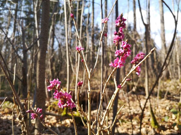 In den Wäldern rund um den Jexhof fühlt sich auch der Gemeine Seidelbast wohl. Ein Frühlingsbote.