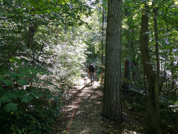 Der Wanderweg führt weitgehend durch ein Naturschutzgebiet. Wir waren mit der Schleppleine unterwegs und haben etliche Menschen mit Hund getroffen, die es ebenso gehalten haben.  An warmen Tagen Wasser für den Hund mitnehmen. Die erste Hälfte der Strecke ist weitgehend schattenlos, und an oder in die Lauter gelangt man nicht.