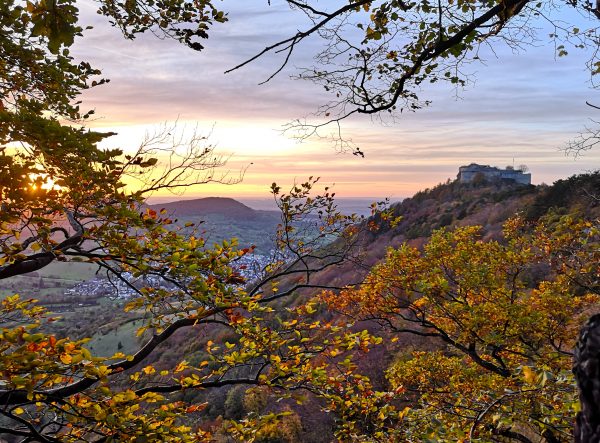 Ausgangspunkt unserer Tour ist der Parkplatz an der Teckhalle an der B 465 – weil sich hier auch ein WoMo parken lässt. Wir überqueren die Bundesstraße an der Ampelkreuzung und biegen links ein in den Mörikeweg. Parallel zur Eisenbahn, dann unter der Bahnunterführung laufen wir in den Ort. Wir folgen der Bundesstraße. Kurz vor der Kirche biegen wir links ein in die Kirchheimer Straße, die uns bergauf durch ein Wohngebiet bringt. Wir stoßen auf die Weinbergstraße und biegen links ab, weiter durchs Wohngebiet. An der T-Kreuzung folgen wir dem Rebenweg zunächst nach rechts, dann biegen wir links ab auf „Hinter der Steige“. Wenige Meter hinter der Weggabelung beginnt nun links der Wanderweg zur Burg Teck. Über ein Teersträßchen (nur Anlieger) geht`s stramm bergauf, vorbei an Streuobstwiesen. Dann beginnt das Naturschutzgebiet mit offenen Wiesenfläche. Ab jetzt immer bergauf, den Wegweisern zur Burg folgen. Hinweg wie Rückweg.