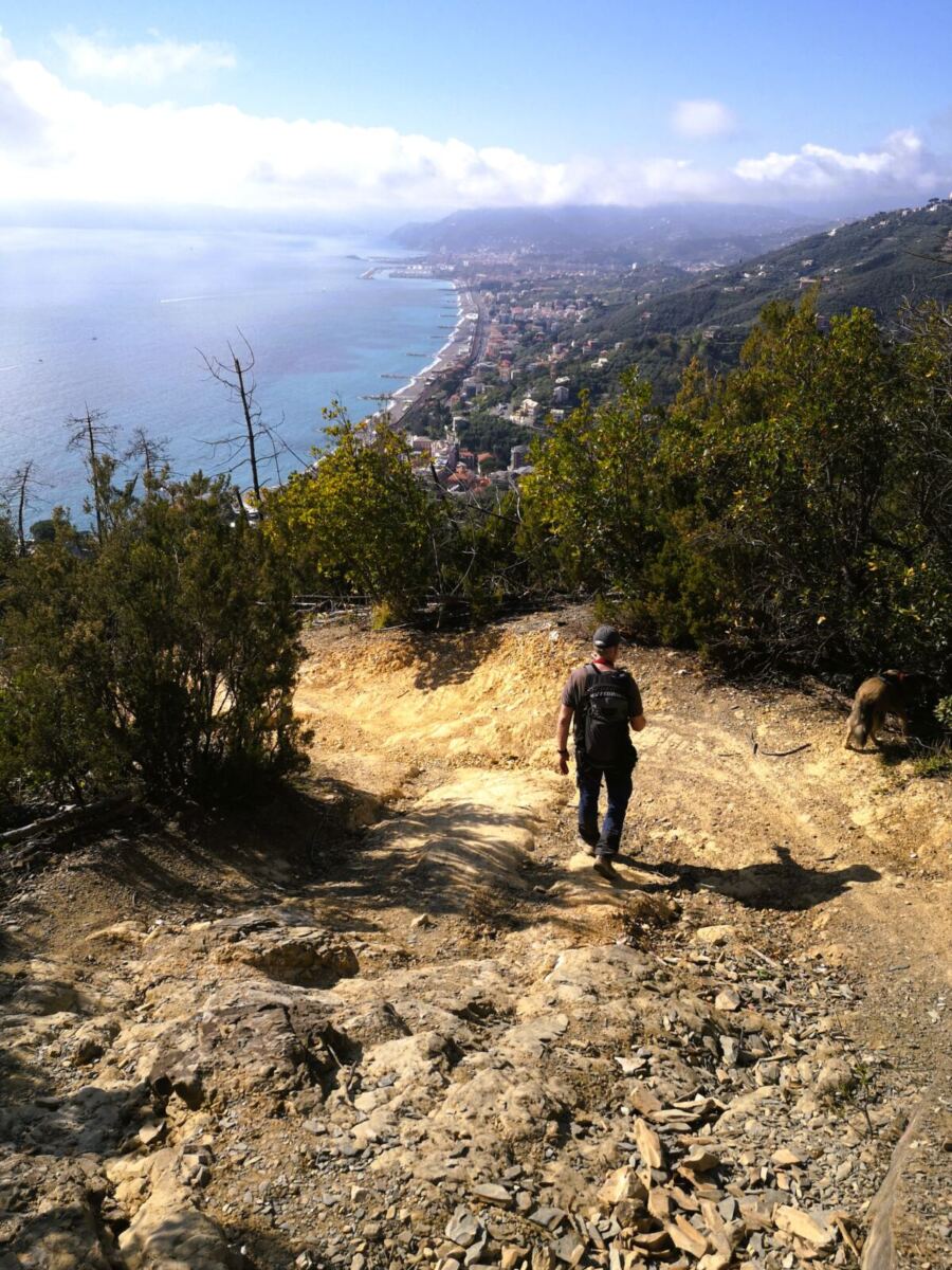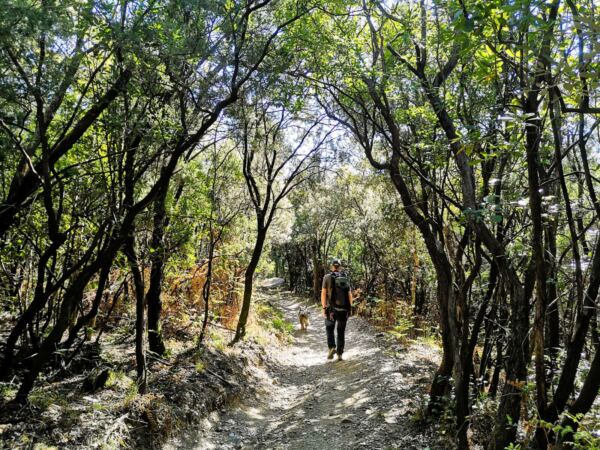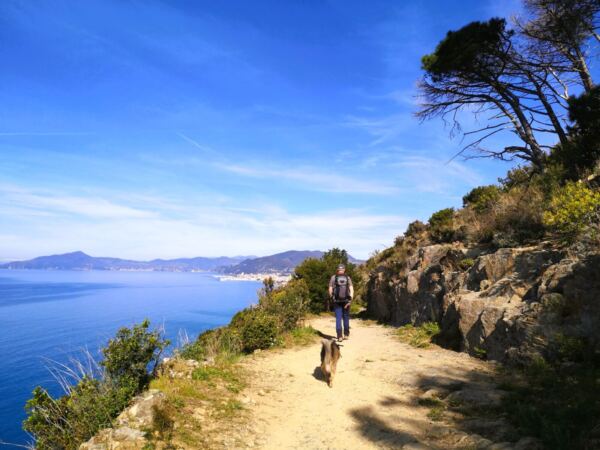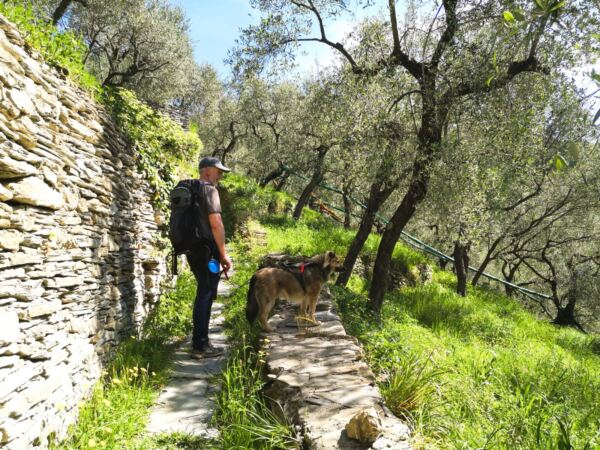 Hinter der lebhaften Küste von Sestri Levante beginnt eine ganz andere Welt. Nur wenige Schritte vom Meer entfernt steigen die Hügel steil an – ein Mosaik aus alten Terrassen, Olivenhainen, dichtem Mittelmeerwald und schmalen Pfaden, die seit Jahrhunderten die kleinen Dörfer miteinander verbinden. Genau hier verläuft diese abenteuerliche und abwechslungsreiche Rundwanderung, die uns mit unserem Hund über die Höhenzüge oberhalb der ligurischen Riviera führt – immer wieder mit weitem Blick über das Meer und die charakteristische Küstenlinie des Golfs von Tigullio. 🌊🌿🐾