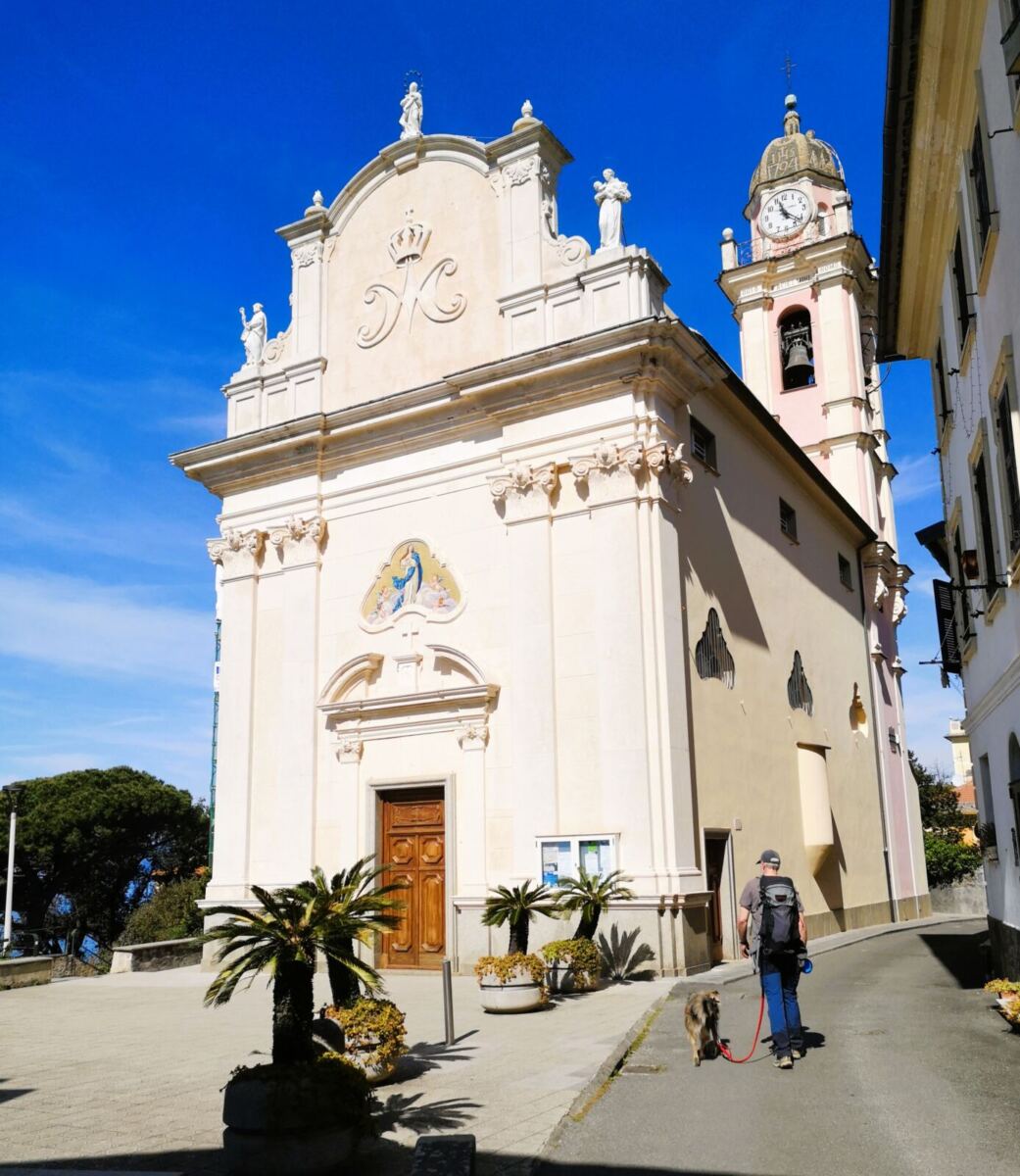 Weiter führt uns die Wanderung hinüber in den Badeort Cavi di Lavagna und wieder bergauf in das stille Hinterland. Dort liegen kleine Weiler und Kirchen, die seit Jahrhunderten Orientierungspunkte in der hügeligen Landschaft sind: etwa die aussichtsreich gelegene Parrocchia di Santa Giulia, die hoch über der Küste thront, ein beliebter Ausflugsort für Einheimische. Noch weiter oben erreichen wir schließlich das kleine Dorf Solana mit der Chiesa di Santa Maria Assunta, wo sich die Landschaft bereits deutlich alpiner anfühlt.