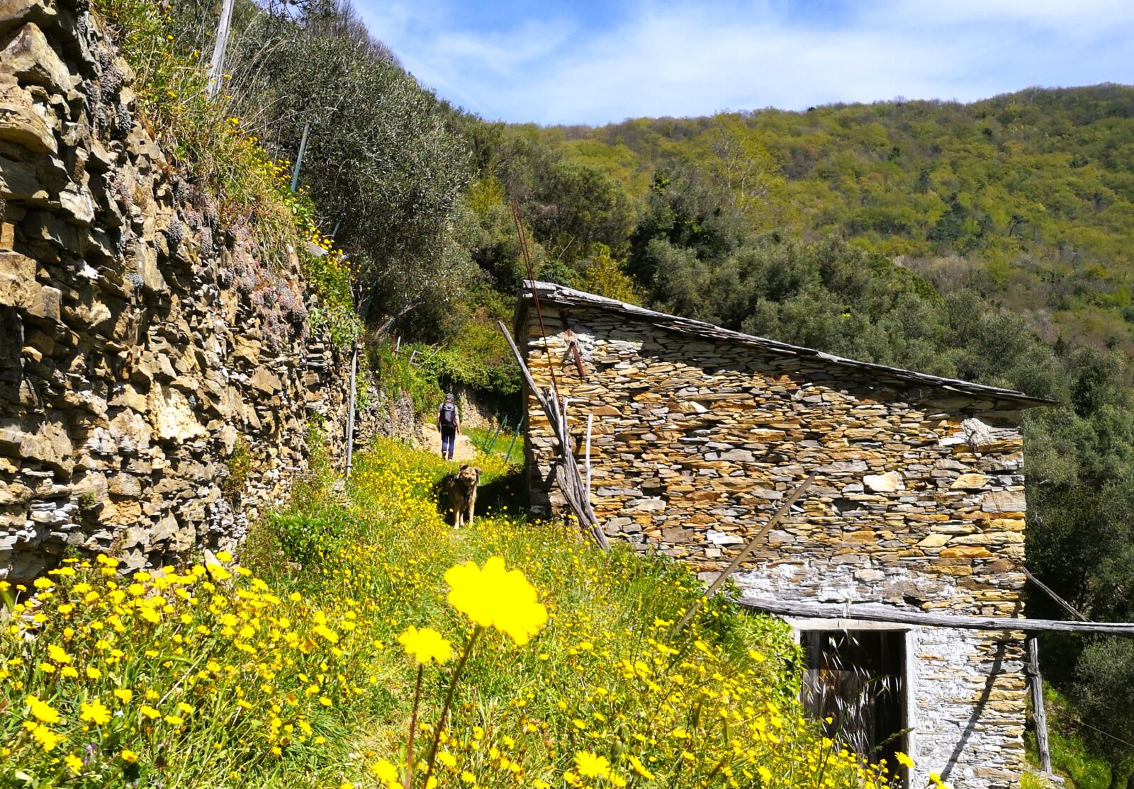 Unterwegs auf uralten Wegen. Hier steigen wir durch die terrassierten Hänge hinter Sorlana.