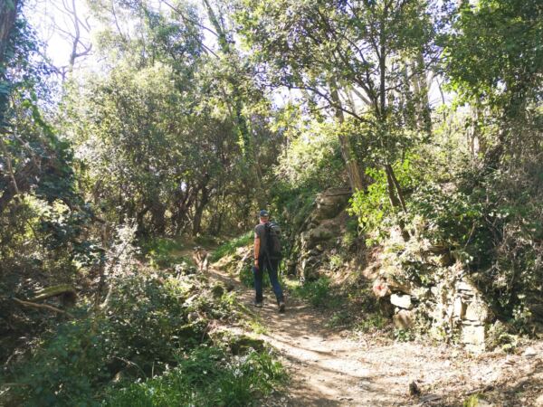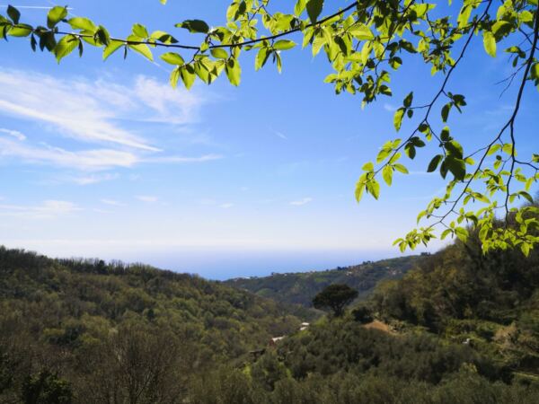 Zwischen diesen Stationen wechseln sich schattige Waldpassagen, alte Saumpfade, kleine Wasserläufe und offene Terrassenhänge ab. Immer wieder öffnen sich dabei überraschende Ausblicke auf die Küste.