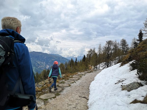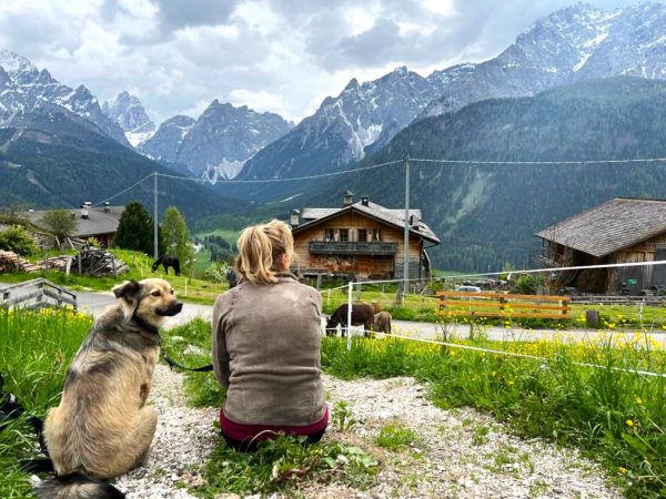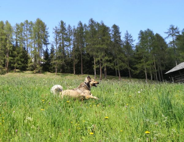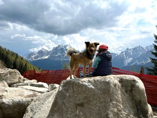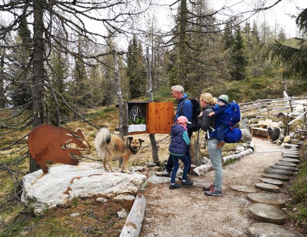 In der Nähe von Sexten auf der Staatsgrenze von Österreich und Italien erhebt sich der gut 2.400 m hohe Helm mit seiner gemütlich-runden Kuppe. Weithin sichtbar ist die Ruine eines Schutzhauses auf seinem Gipfel. An seinen Flanken finden sich noch heute die Reste etlicher Befestigungsanlagen aus dem Gebirgskrieg (1915 – 1918). Vom Helm genießt man einen Superblick auf die „Sextener Sonnenuhr“, eine Bergformation mit den markanten Gipfeln Neuner, Zehner, Elfer, Zwölfer und Einser. Unsere Tour mit Hund und Kindern bringt uns mit der Seilbahn hinauf zur Bergstation. Von hier aus folgen wir dem gut 1,5 km langen, liebevoll angelegten Familienpark „Olpers Bergwelt“. Für Kinder (und neugierige Hunde 🙂 ) gibt es hier viel zu entdecken. Wir waren kurz vor der Hauptsaison unterwegs. Wenig los. Unser Amos konnte frei laufen. Nur am Streichelzoo lief er an der Leine.