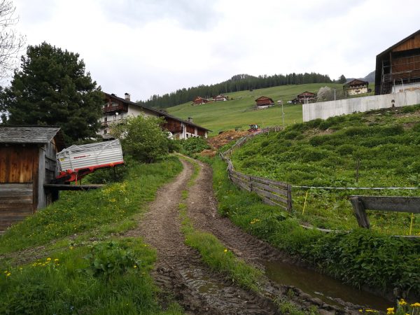 Hier führt uns der Weg wenige Meter über das Bauernhofgelände.