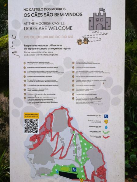 Die Ruine mit ihren gut erhaltenen Mauern, Zinnen und Toren zwischen hohen Farnen, Sträuchern und Stauden geht auf eine Burganlage aus dem 8. oder 9. Jahrhundert zurück. Während der Herrschaft der Mauren diente sie ihnen zur Verteidigung der Region. 1147 wurde sie von christlichen Kreuzrittern erobert. Im 19. Jahrhundert ließ König Ferdinand II. die Burg teilweise restaurieren und in die Parklandschaft seines Palácio da Pena integrieren. Atmosphärisch sehr schön und verwunschen. Hunde sind auch in hinter dem inneren Wall der Anlage willkommen. Dabei gilt: pro Besucher*in ein Hund, der an der kurzen Leine geführt werden muss.