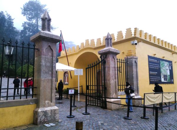 Unser Wanderweg führt weiter zum königlichen Palácio Nacional da Pena (auch Palácio da Pena). Der wurde nach 1840 im Auftrag von König Ferdinand II. auf den Ruinen eines Klosters errichtet. Der Palast verbindet verschiedene historisierende Baustile wie Neorenaissance, Neogotik, Neo-Manuelinik und maurische Elemente und gilt als herausragendes Beispiel der architektonischen Romantik des 19. Jahrhunderts. Er zählt zu den meistbesuchten Gebäuden Portugals. Hier ging`s selbst im Januar trubelig zu. Besucher*innen erhalten mit ihrem Ticket einen Zeitslot zugewiesen. Nur so lässt sich der Besucheransturm offenbar kanalisieren. Hunde sind im Palácio da Pena nicht gestattet, auch nicht in der Außenanlage hinter dem Zaun. Wir haben uns damit begnügt, das Zuckerbäckerbauwerk von außen zu betrachten und dem Kommen und Gehen der Menschen zuzusehen.