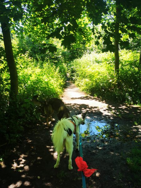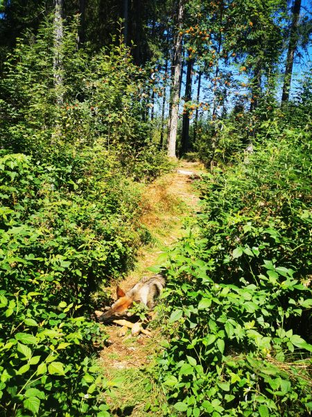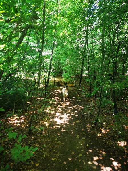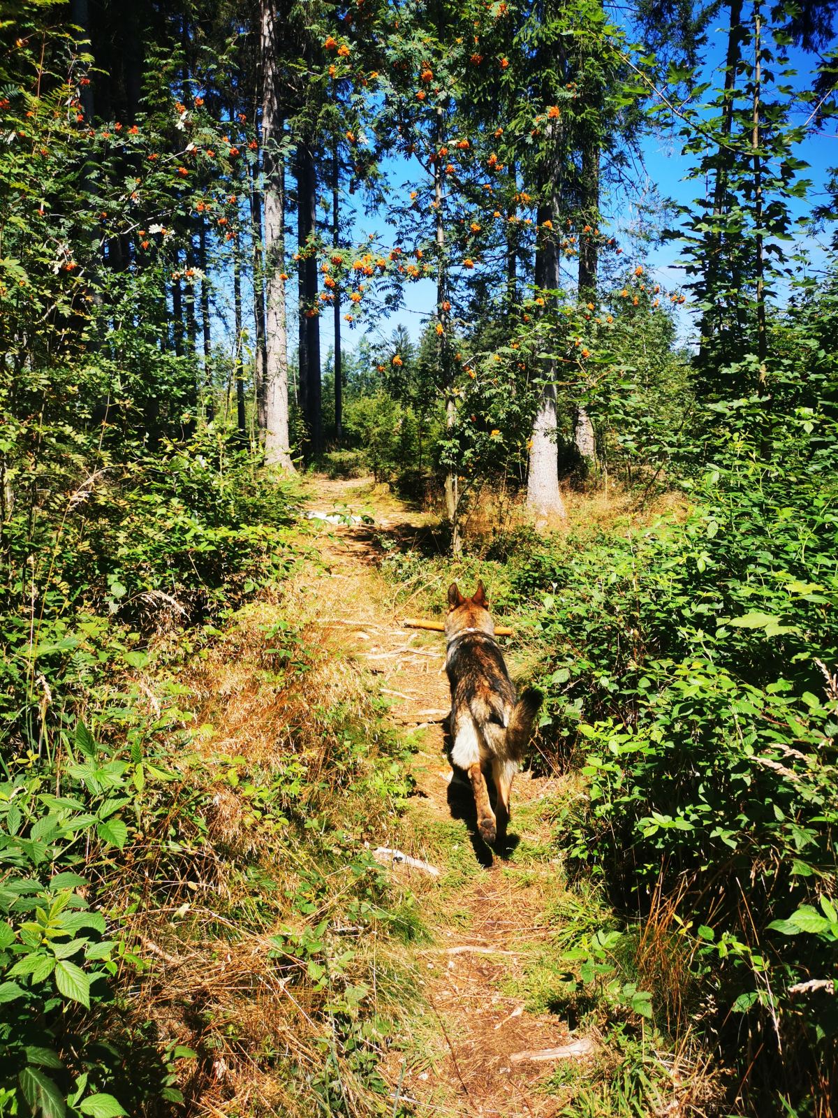 Neben den größeren Wegen, auf denen man auch gut mit Hunden Fahrrad fahren kann, gibt es viele kleine, verschlungene Wege durch den Wald. Die angelegte Tour lässt sich deshalb ganz unkompliziert beliebig lange ausdehnen.