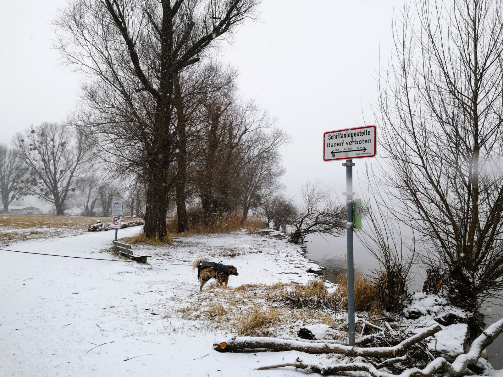 Von hier an heißt es: immer am Wasser entlang. Der Uferweg führt uns entspannt Richtung Süden. Amos springt immer wieder ins Wasser. Für ihn hat es sich jetzt schon gelohnt.