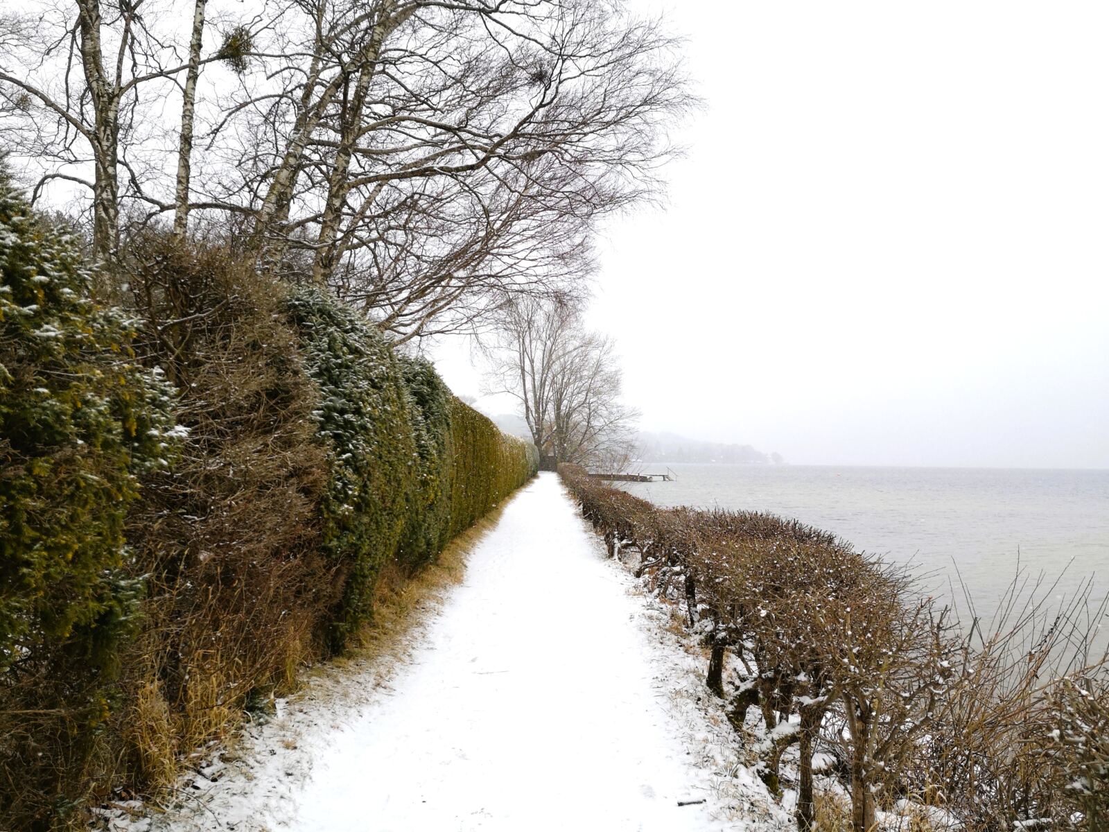 Bei nächster Gelegenheit biegen wir rechts ab und laufen bergab Richtung See. Nach einigen weiten Bögen mündet der Forstweg wieder auf die Nördliche Seestraße.
