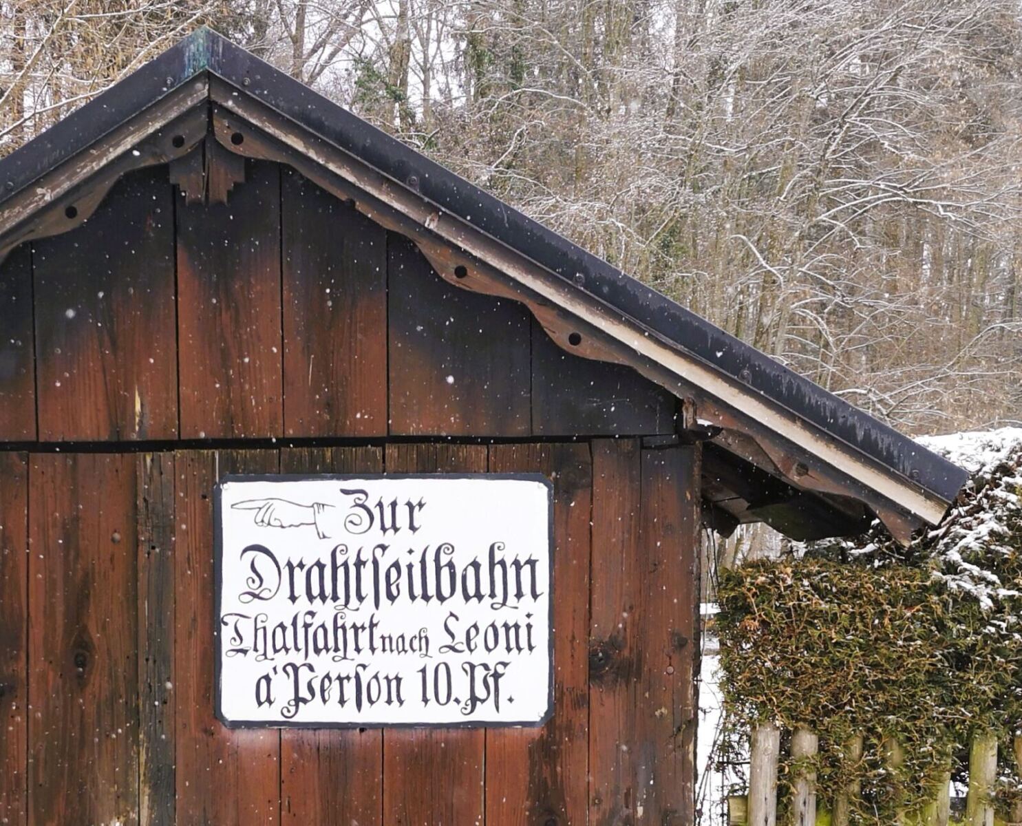 Hinter einem Café mit historischem Hinweisschild aus der Seilbahnzeit mündet der Rottmannweg in die gleichnamige Straße. Diese stößt nach wenigen Metern auf die Dürrbergstraße, der wir folgen.