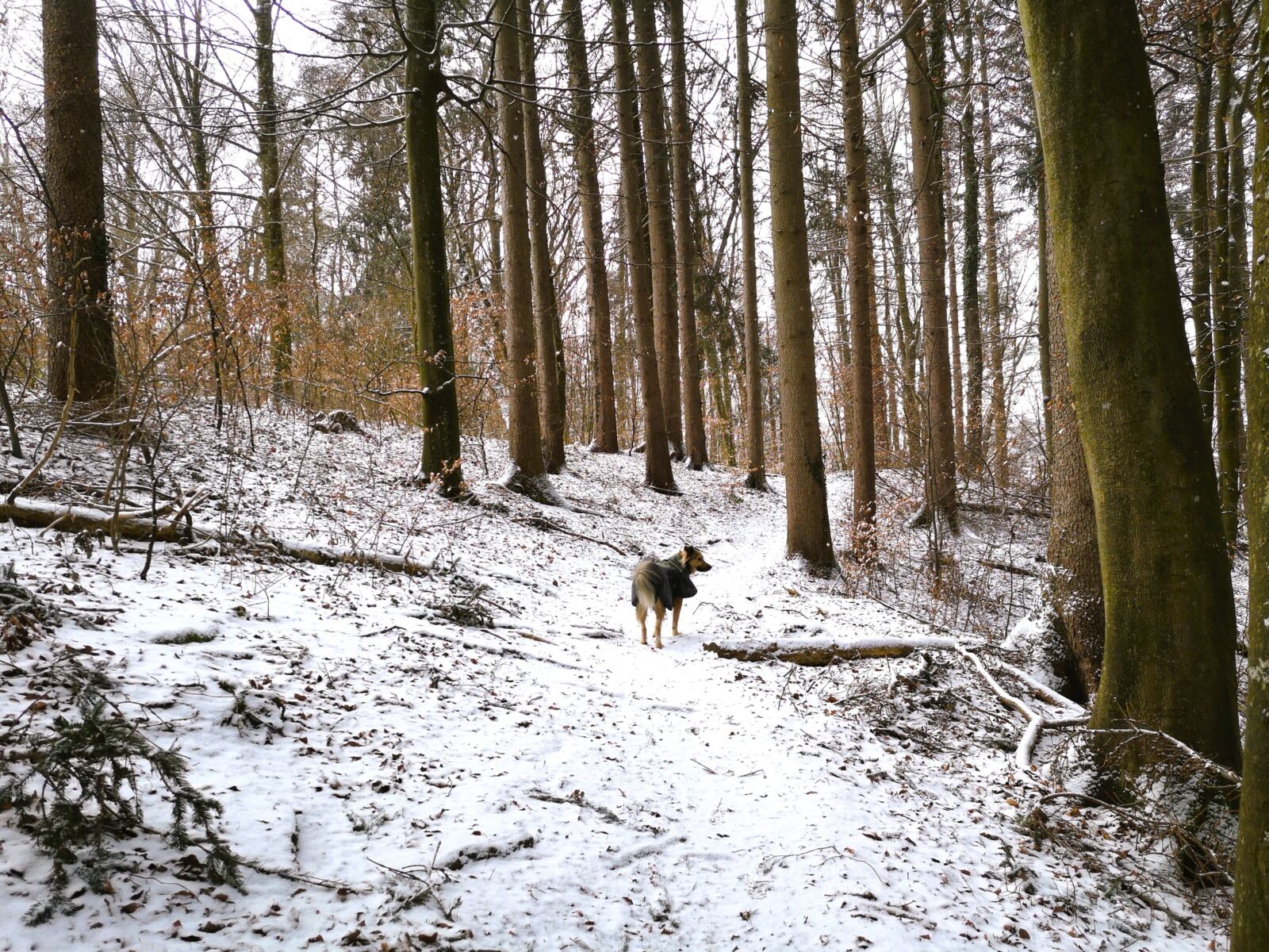 Oben angekommen laufen wir im Bogen nach rechts und folgen dem Rottmannweg, der hier als weicher Waldpfad durch Mischwald führt.