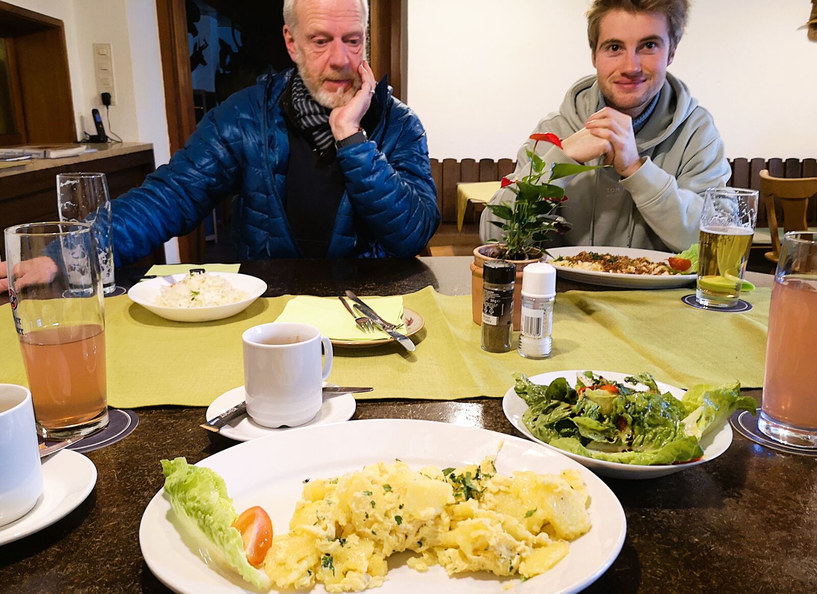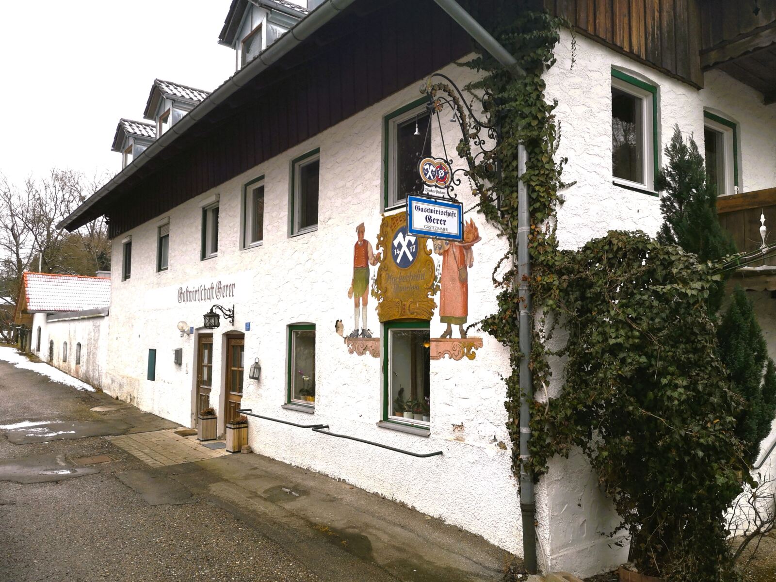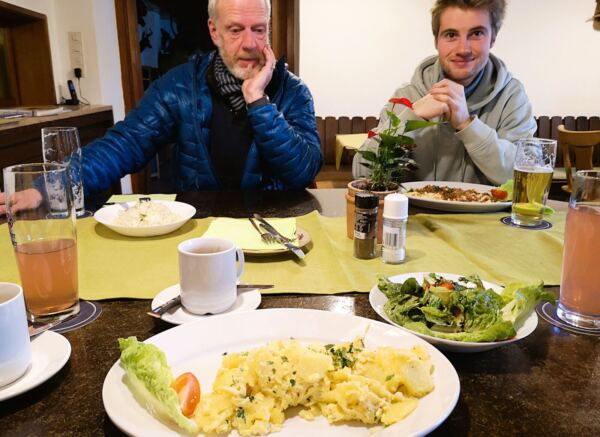 Hinter der Ammerlander Fischhalle biegen wir links ab und folgen der Ammerlander Hauptstraße bergauf bis zum Gasthaus Gerer. Sehr traditionell, sehr freundlich, sehr entspannt. Unser Hund ist ebenso herzlich willkommen wie wir. Alles frisch gekocht – nichts aus der Dose oder Flasche. Super Salatdressing. 🍽️