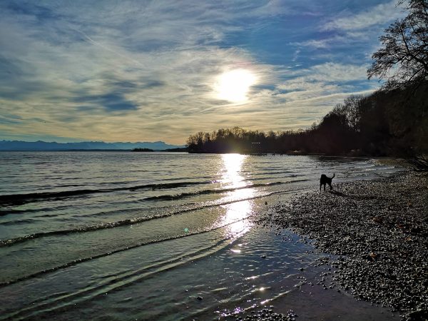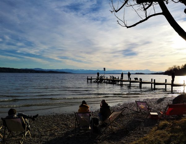 Mit einer Fläche von über 58 Quadratkilometern und rund 49 Kilometern Uferlänge hat der Starnberger See viele tolle Orte zu bieten. Einer unserer Lieblingsplätze am Starnberger See mit Hund ist der Kiosk und Seegarten (Biergarten trifft es irgendwie nicht richtig) „Steg 1“ bei Possenhofen. An schönen Sommertagen ist man hier allerdings nicht allein, die Schlange kann schon mal etwas länger sein. Aber auch im Winter ist der Kiosk stundenweise geöffnet – und gerade dann traumschön. Im Liegestuhl relaxen, die Sonne im Gesicht, das Wasser und die Alpen im Blick. Was für ein Glück!