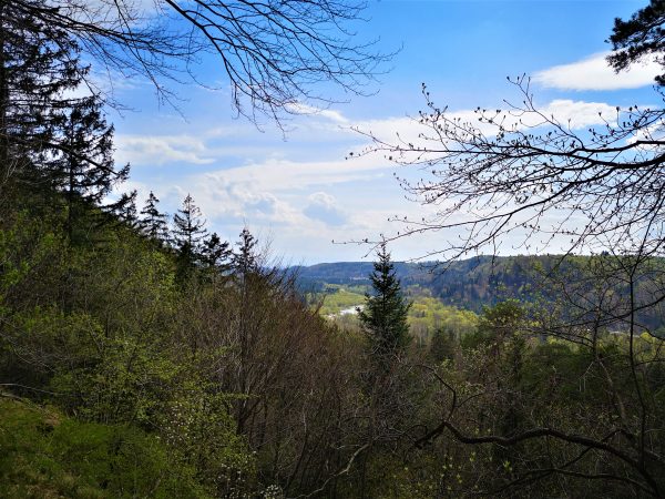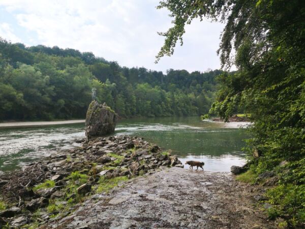 Blick auf die Floßrutsch`n. Hier sausen die Floße nebst Ausflugsgesellschaften mit ordentlich Tempo hinuter.